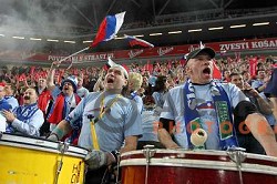 Fans of Slovenia in action during handball match Slovenia-Poland in first leg of qualification for EHF Handball Euro 2012, played in front of 12.000 spectators in Stozice, Ljubljana, Slovenia on march 9, 2011