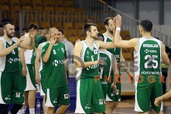 action in Nova KBM league basketball match between Union Olimpija and Krka in Tivoli Hall, Ljubljana, Slovenia on April 11, 2016
