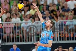 Tine Urnaut in action during preparation match before Volleyball World Championship between Slovenia and Iran in SRC Stozice, Ljubljana, Slovenia on August 23, 2022