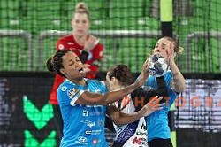 Allison Pineau in action during EHF Champions league Women handball match between Krim Mercator (SLO) and Vipers Kristiansand (NOR) in Ljubljana, Slovenia on September 18, 2022