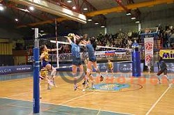 in action during The Final of Sportklub league volleyball match between Calcit and Gen I Volley in Kamnik, Slovenia on April 20, 2023