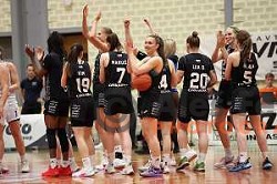 Players of Cinkarna Celje celebrate win at 1. SKL woman 2022-2023 second final match between Cinkarna Celje and Triglav Kranj in Kranj, Slovenia on April 26, 2023. Foto: Filip Barbalic