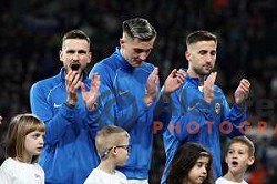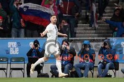 Adam Gnezda Cerin and players of Slovenia celebrate goal during a friendly football match between Slovenia and Portugal in Stadium Stozice, Slovenia on March 26, 2024