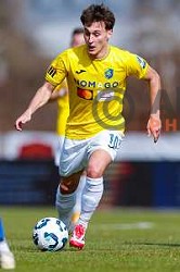 In action during Prva liga Telemach 2024/2025 football match between Bravo Bing Bang and Nafta 1903 in Ljubljana, Slovenia on March 8, 2025