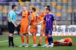 In action during Prva liga Telemach 2024/2025 football match between Celje and Domzale in Celje, Slovenia on May 25, 2025