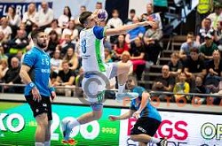 Domen Tajnik during Euro Men 2026 Qualifiers handball match between Slovenia and Estonia in Golovec Hall, Celje, Slovenia on May 11, 2025