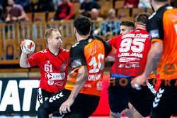 Stas Skube in action during EHF European League Men 2025/26 match between LL Grosist Slovan (SLO) and Minaur Baia Mare (ROM) in Tivoli Hall, Ljubljana, Slovenia on October 14, 2025