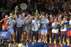 in action during First match of Semi-finals of NLB League 2024/2025 between LL Grosist Slovan and Trimo Trebnje in Kodeljevo Hall, Ljubljana, Slovenia on May 17, 2025.
