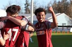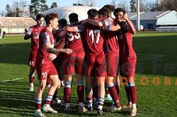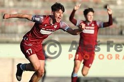 Matej Momcilovski celebrates a goal during the quarter-final of the Slovenian Cup between Triglav and Rogaska in Kranj, Slovenia on April 2, 2024