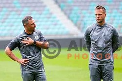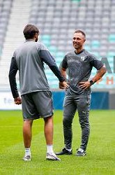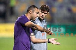 Ivan Senzen and Antonio Delamea Mlinar, assistant coaches of Olimpija during practice session of NK Olimpija before UEFA Conference League play-off in Ljubljana, Slovenia on August 6, 2025