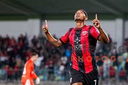 Roger Andretty Murillo Soto celebrates a goal during Prva liga Telemach 2025/2026 football match between Primorje and Bravo in Ajdovscina, Slovenia on August 2, 2025