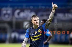 Franko Kovacevic celebrates victory after UEFA Conference League 2025/26 qualification football match between NK Celje (SLO) and FC Lugano (SUI) in Stadion z’dezele, Celje, Slovenia on August 14, 2025. Photo: Jure Banfi