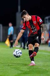 Cedomir Bumbic in action during UEFA Conference League 2025/26 qualifier football match between NK Maribor and Paksi FC in Ljudski vrt, Maribor, Slovenia on July 31, 2025. Photo: Jure Banfi