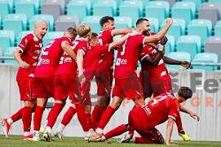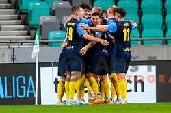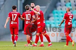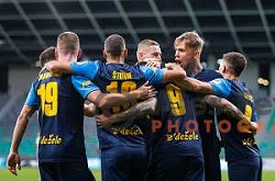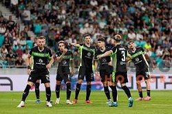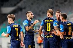 Players of NK Olimpija Ljubljana during UEFA Conference League 2025/2026 third round match between NK Olimpija Ljubljana and KF Egnatia in SRC Stozice, Ljubljana, Slovenia on August 7., 2025. Photo Grega Valancic