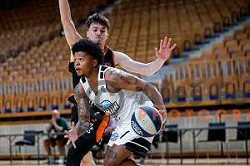 in action during friendly basketball match between Ilirija (SLO) and NKA Universitas Pecs (HUN) in Tivoli Hall, Ljubljana, Slovenia on September 20, 2025