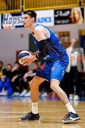 Aleksej Nikolic in action during BKT EuroCup 2025-2026 basketball match between Cedevita Olimpija (SLO) and Baxi Manresa (ESP) in SRC Stozice, Ljubljana, Slovenia on October 1, 2025
