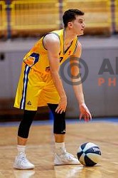 Nejc Baric in action during OTP Bank League 2025/2026 basketball match between Hopsi Polzela and Sentjur in Polzela, Slovenia on October 4, 2025