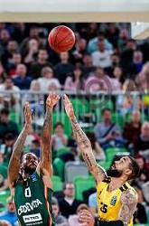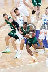 in action during BKT EuroCup 2025-2026 basketball match between Cedevita Olimpija (SLO) and Aris Thessaloniki Betsson (GRE) in SRC Stozice, Ljubljana, Slovenia on October 14, 2025