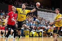 in action during 1.NLB League 2024/2025 handball match between Krka and Gorenje Velenje in Novo Mesto, Slovenia on April 18, 2025