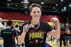 Jure Dolenec in action during second match of the Final of 1.NLB League 2024/2025 between RK Gorenje Velenje and RD LL Grosist Slovan in Red Hall in Velenje, Slovenia on June 4, 2025
