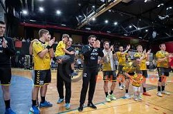 Zoran Jovicic, head coach of Gorenje Velenje in action during 1.NLB League 2024/2025 handball match between Krka and Gorenje Velenje in Novo Mesto, Slovenia on April 18, 2025