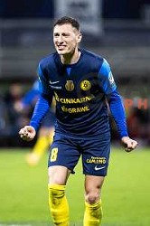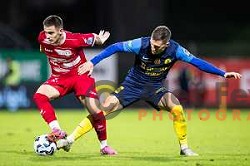 Nejc Viher in action during Prva liga Telemach 2025/2026 football match between Bravo Big Bang and Maribor in Ljubljana, Slovenia on November 1, 2025