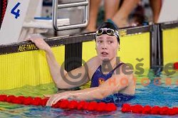 Florine Gaspard (BEL) comeptes at Spela & Vesna Memorial International swimming meeting in Kranj, Slovenia on November 22, 2025