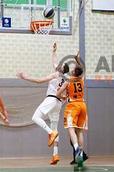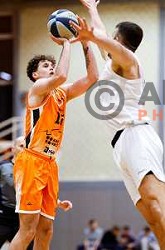 Jost Flerin in action during OTP Bank League basketball match between Triglav and Kansai Helios in Planina Hall, Kranj, Slovenia on December 6, 2025
