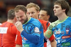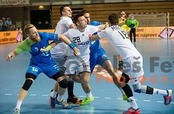 Miha Zvizej, Jure Natek in action during football match Slovenia - Slovakia, EHF Euro Championship qualifying Bonifika , Koper , 29.10.2014