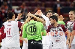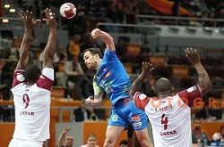 action at Preliminary Group A match Slovenia-Qatar at Qatar 2015 World Handball championships in Lusail Sport Arena, Doha on January 19, 2015