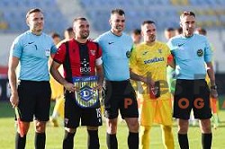 Referees, Haris Dedic of Primorje and Daniel Offenbacher of Domzale prior to Prva Liga Telemach 2024/2025 football match between Domzale and Primorje in Domzale, Slovenia on November 2, 2024. Photo: Filip Barbalic