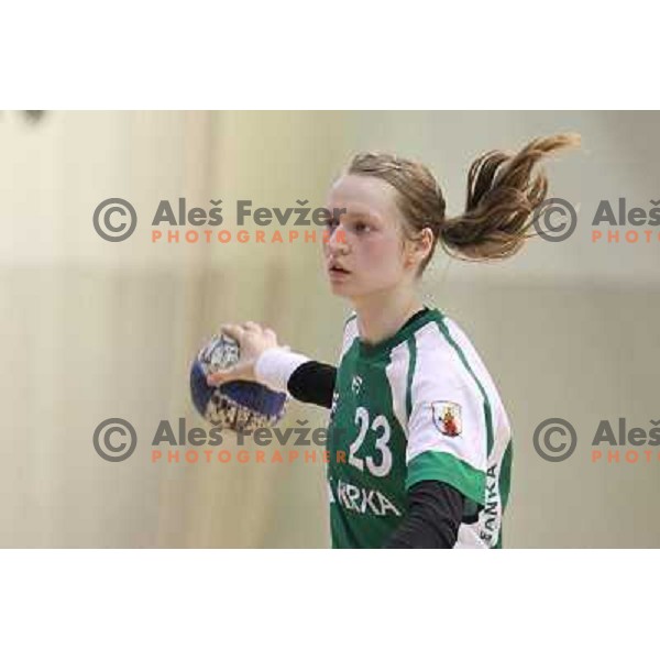 Description: Pika Dvornik of Krka in action during handball game Krka-Krim Mercator in the final of Slovenian Cup, played in Zagorje, Slovenia on April 3, 2011.