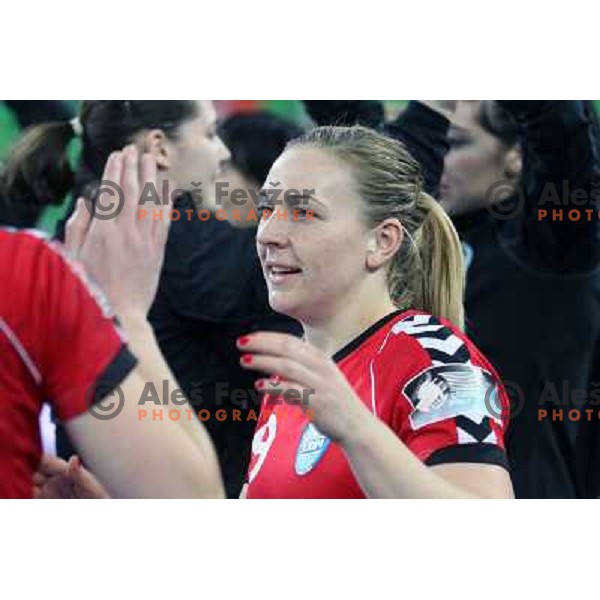 Description: Clara Woltering of Buducnost in action during handball match RK Krim Mercator -Buducnost Podgorica in EHF Women\'s Champions league, played in Stozice, Ljubljana, Slovenia on February 24,2012