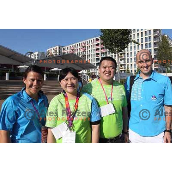 Description: Welcome ceremony and Raising of the flag of Slovenia Olympic team in Olympic Village during London 2012 Summer Olympic games, Great Britain on July 26, 2012