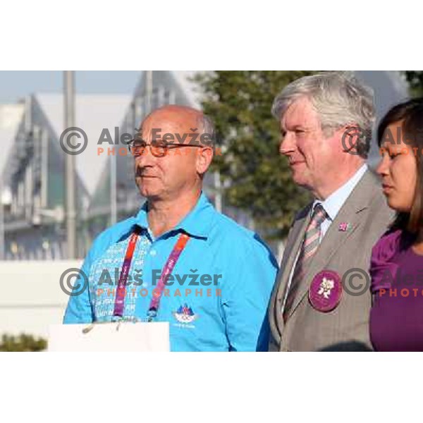 Description: Milos Jansa at Welcome ceremony and Raising of the flag of Slovenia Olympic team in Olympic Village during London 2012 Summer Olympic games, Great Britain on July 26, 2012