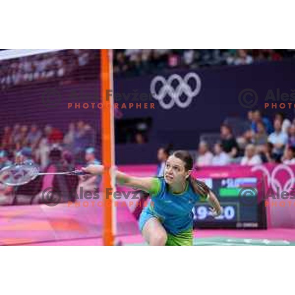 Description: Maja Tvrdy of Slovenia in action in second round of badminton tournament in Wembley Arena at London 2012 Summer Olympic games on July 29, 2012