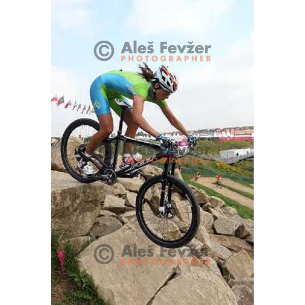 Description: Tanja Zakelj of Slovenia during free practice session on Olympic MTB course at Hadleigh Farm near Southend on Sea,Essex during London 2012 Summer Olympic games on August 9, 2012