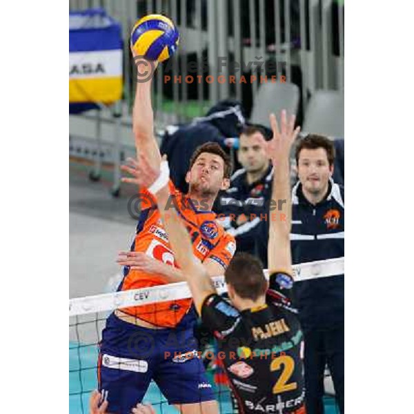Description: Jayson Jablonsky of ACH Volly in action during CEV Championsleague 2012-2013 played in Sport Hall Stozice, Ljubljana, Slovenia on 5th December 2012