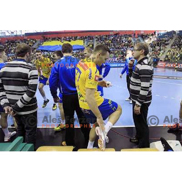 Description: Players of Celje PL during eight-final of EHF Velux Men\'s Champions league handball match RK Celje Pivovarna Lasko- HSV Hamburg, played in Zlatorog Arena, Celje, Slovenia on March 17, 2013
