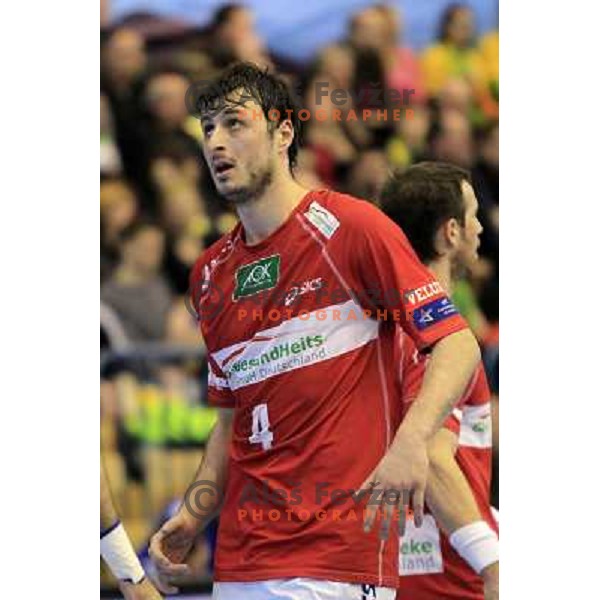 Description: Alem Toskic in action during eight-final of EHF Velux Men\'s Champions league handball match RK Celje Pivovarna Lasko- HSV Hamburg, played in Zlatorog Arena, Celje, Slovenia on March 17, 2013
