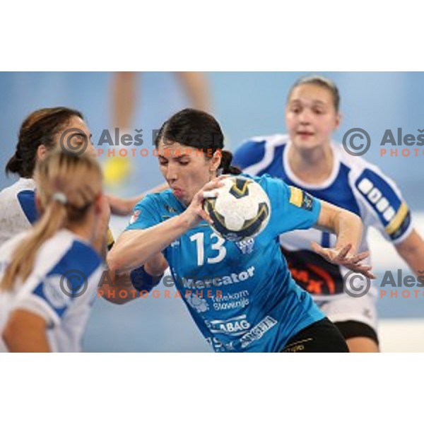 Description: Tamara Mavsar of Krim Mercator in action during EHF Women\'s Champions League between Krim Mercator (SLO) and Dinamo Sinara (RUS) in Stožice Hall, Slovenia on November 9,,2014