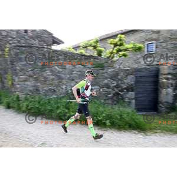 Description: Augusto Zamboni ( ITA) running at Ultra trail Vipava Valley with more than 400 runners at 25 km, 50 km and 100 km distance with spectacular 360 degrees view over Vipava Valley on May 9, 2015