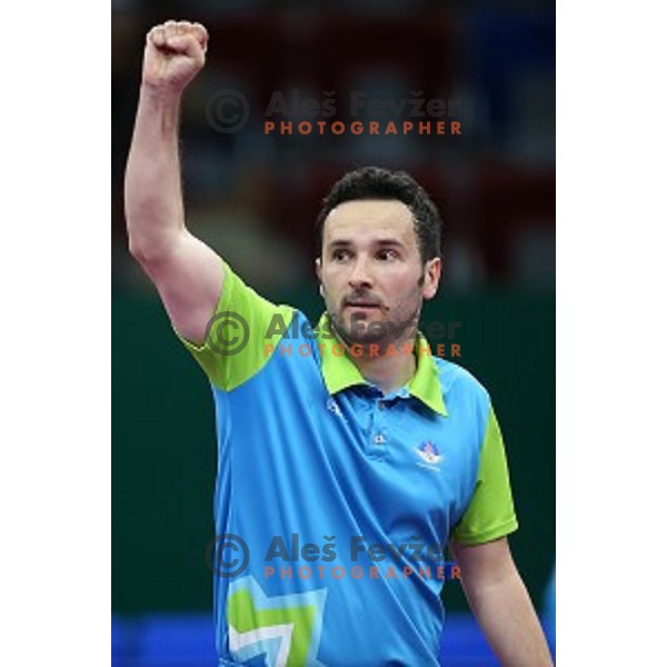 Description: Bojan Tokic of Slovenia in first round action at table tournament in Baku Sports Hall during Baku 2015 First European Games, Azerbaijan on June 16, 2015