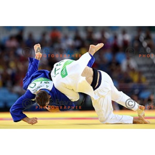 Description: Adrian Gomboc (SLO) fights with Basile (ITA) in semi-final of Judo Men\'s -66 kg category at Rio de Janeiro 2016 Olympic games , Brasil on August 7, 2016