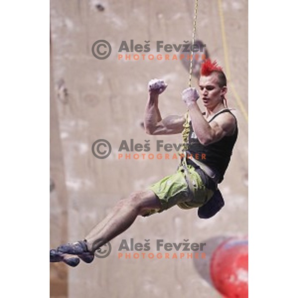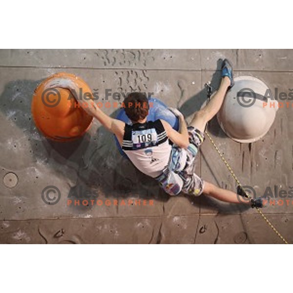 Description: Urban Primozic of Slovenia competes in the Final of IFSC Climbing World Cup in Zlato Polje Sports Hall, Kranj, Slovenia on November 27, 2016