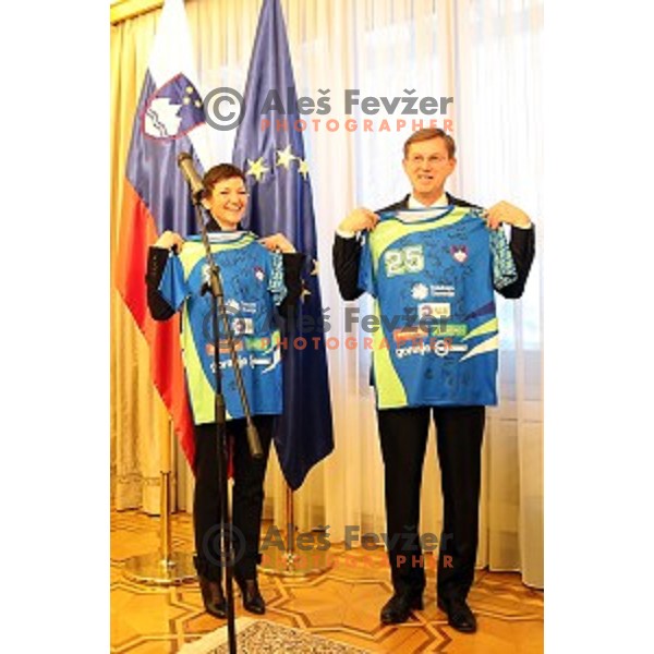 Description: Maja Makovec Brencic,Miro Cerar during Reception for Slovenia Handball Team - bronze medalists of 2017 World Championships held by Prime Minister in Vila Podroznik, Ljulbjana, Slovenia on January 30, 2017