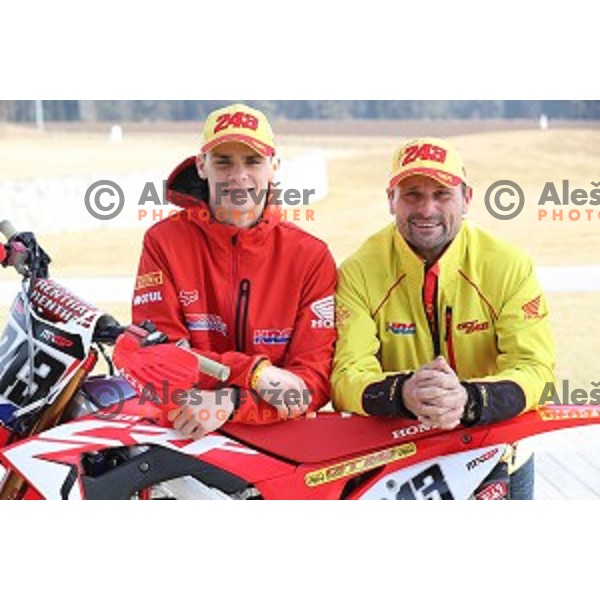 Description: Tim Gajser, World Champion MX 2016 and his father Bogomir Gajser during AMZS press conference before start of MX GP season 2017 in Smlednik, Slovenia on February 17, 2017