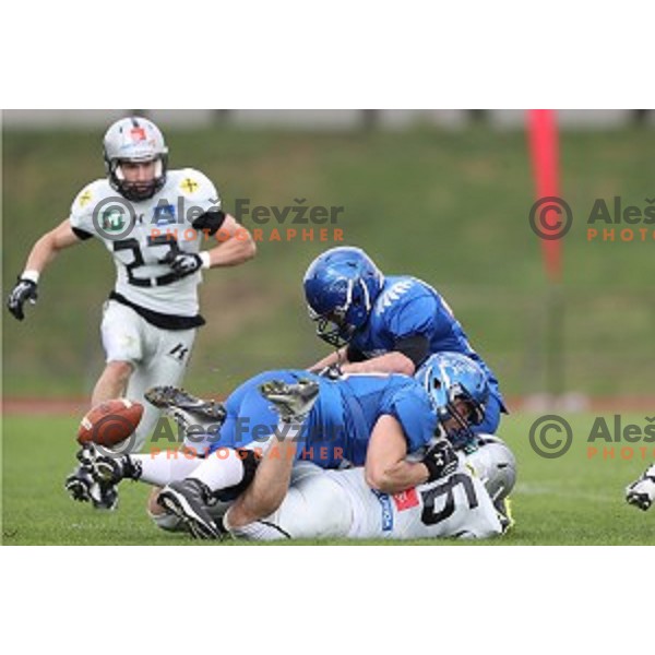 Description: Blaz Kolar nr.71 of Silverhawks in action during Austrian Football League match between Ljubljana Silverhawks and Swarco Raiders in Ljubljana on April 15, 2017