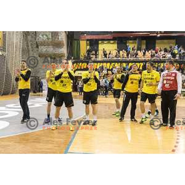 Description: Gorenje’s head coach Borut Plaskan celebrating after 1 NLB Leasing League match between Gorenje and Celje PL, in Velenje, on April 26th, 2017