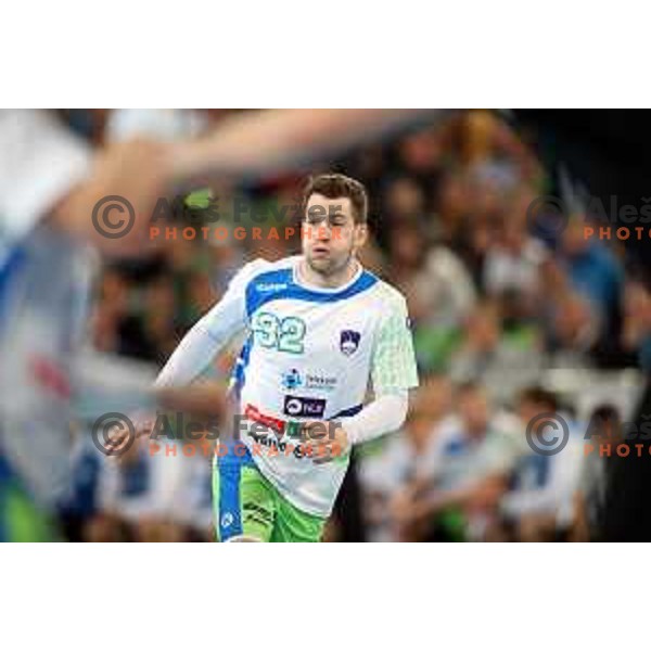 Description: Miha Zarabec in action during Euro 2018 Qualifyers handball match between Slovenia and Germany in SRC Stozice, Ljubljana, Slovenia on May 3,2017